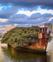 Međutim, tokom godina struktura je ostala na mestu, a priroda je preuzela . Drveće i bujna vegetacija rasli su preko trupa broda, pretvarajući ga u plutajuću šumu koja izaziva strahopoštovanje. Danas je ovaj fenomen simbol otpornosti prirode i nezaobilazna atrakcija za putnike i fotografe.