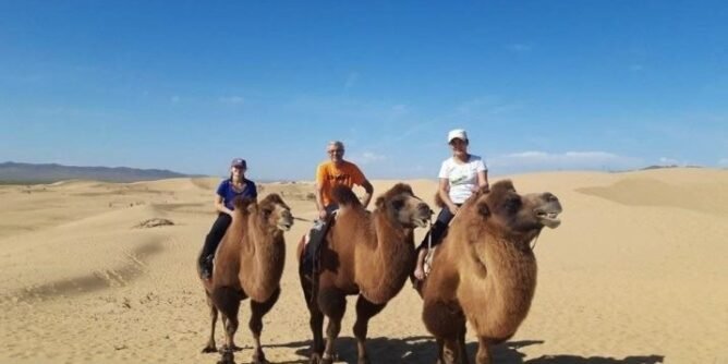 U Gobi sam krenuo sa nekim posebnim nadahnućem, željom davno rođenom u mašti koja je godinama tavorila na policama snova čekajući na svoje ostvarenje. Posle prijatno prespavane noći na ivici pustinje gde se retka trava provlači kroz skorašnje nanose peska, jer se Gobi neprestano širi, u rano jutro krenuli smo, Sajna (naša mongolska prijateljica), Vesna i ja na dvogrbim, baktrijskim kamilama u Hongor, po mnogima najzanimljiviji deo Gobi pustinje. Laganim hodom mirnih, zbog peščanih oluja međusobno povezanih, kamila ušli smo u pustinju boje meda. Prijatna toplina ranih sunčevih zraka koja se osećala čak i kroz jaknu vrlo brzo je prelazila u toplotu koja nas je naterala da zaustavimo naš mali karavan i svučemo višak gardarobe. Prolazeći pored lobanje od verovatno zalutalog jaka, uz osmeh dobacujem Vesni: